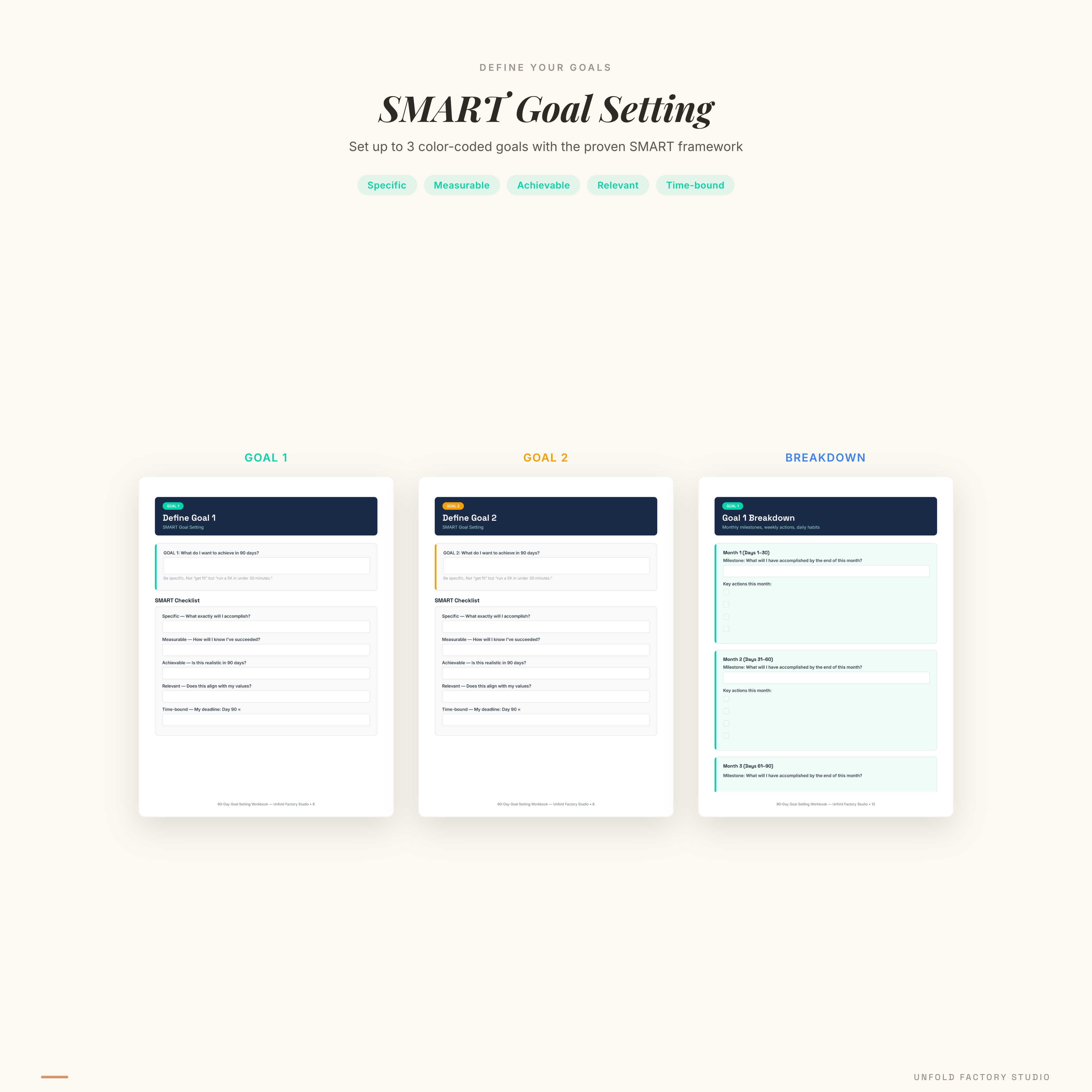 - 90-Day Goal Setting Workbook — A4, full color (85 pages)