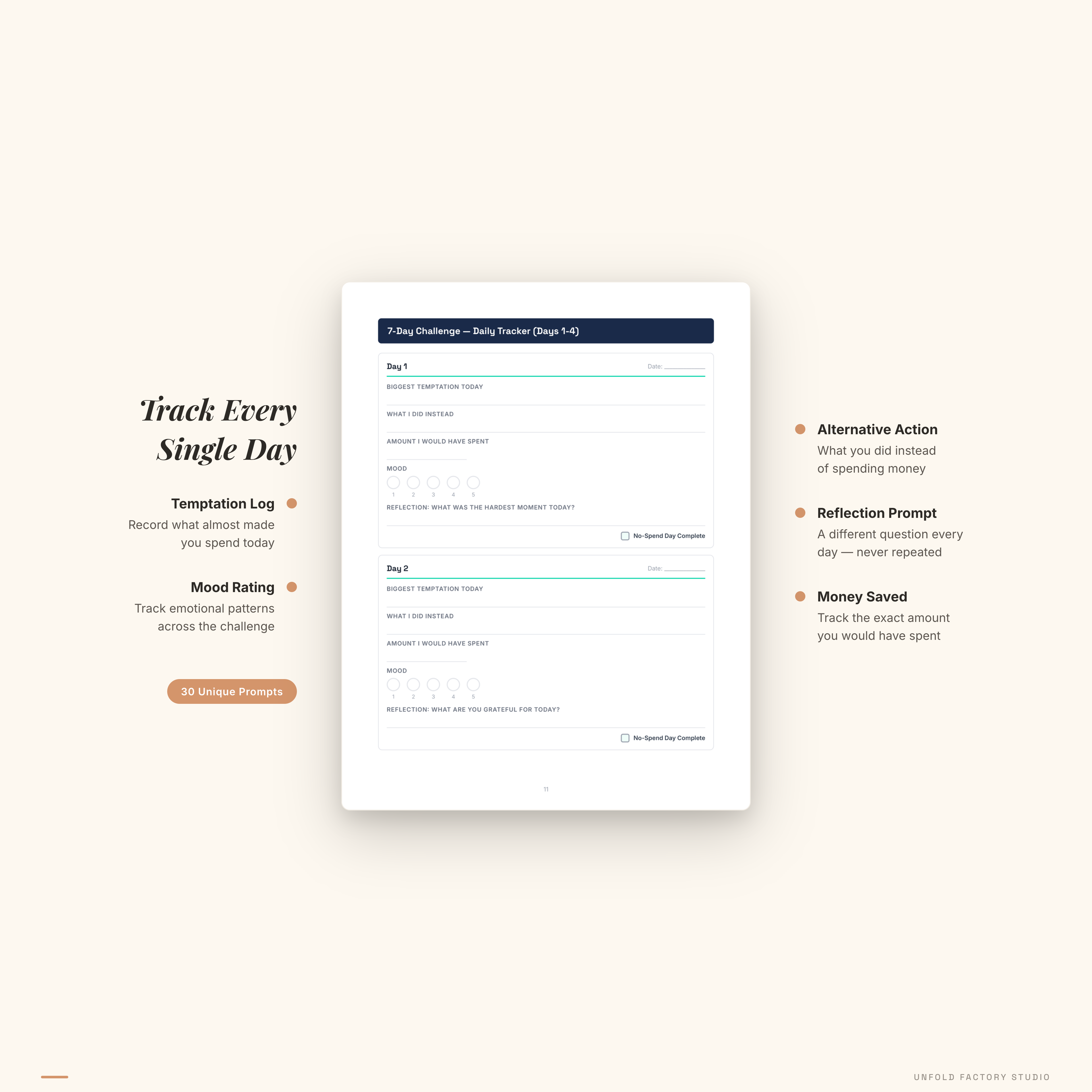 Tired of saying “I’ll start saving next month” and never following through? The No-Spend Challenge Kit gives you the structure, daily tracking, and reflection tools to actually complete a no-spend challenge — whether you start with 7 days or commit to the full 30.