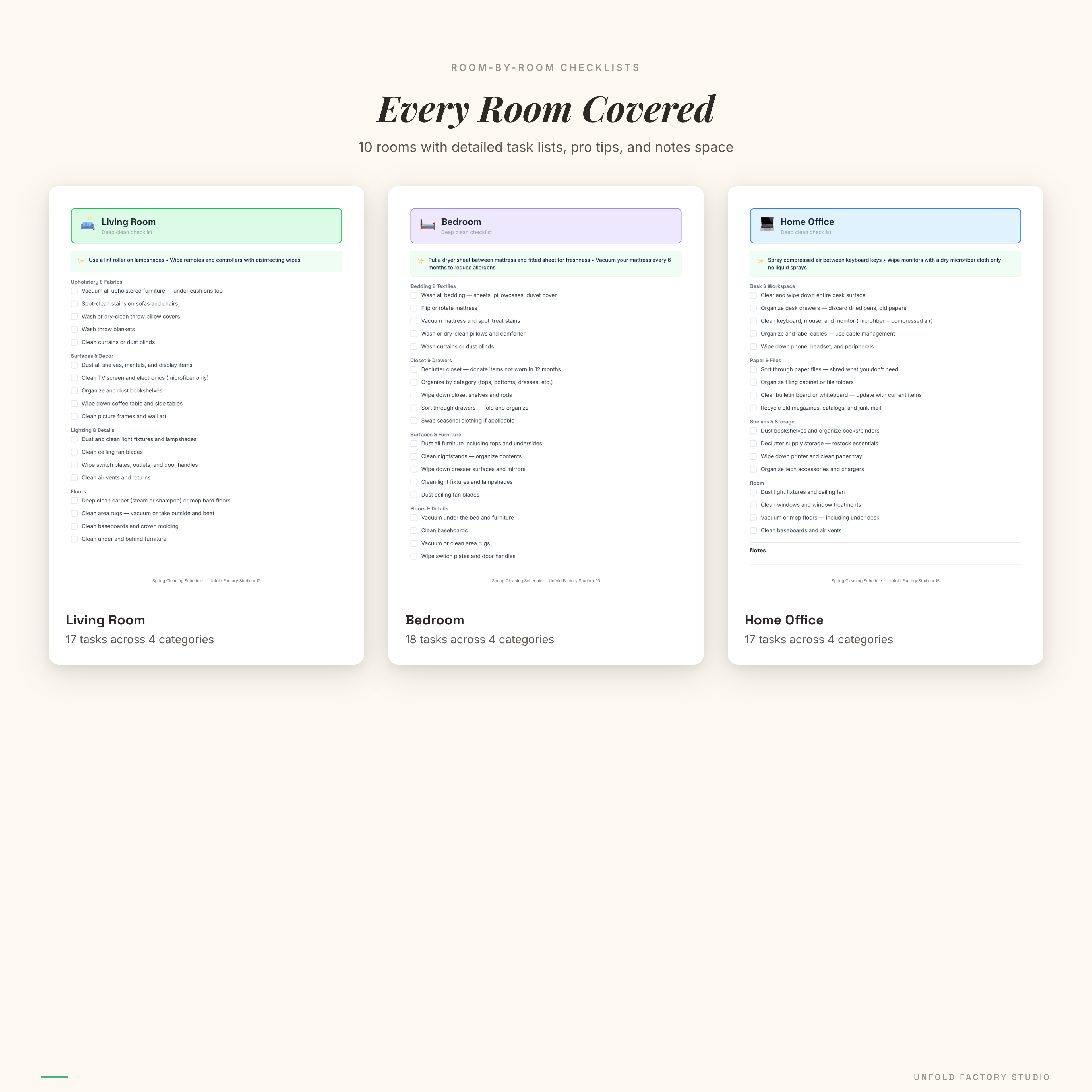 Built by Unfold Factory Studio. 40 pages. 10 rooms. 159 tasks. One clean home.