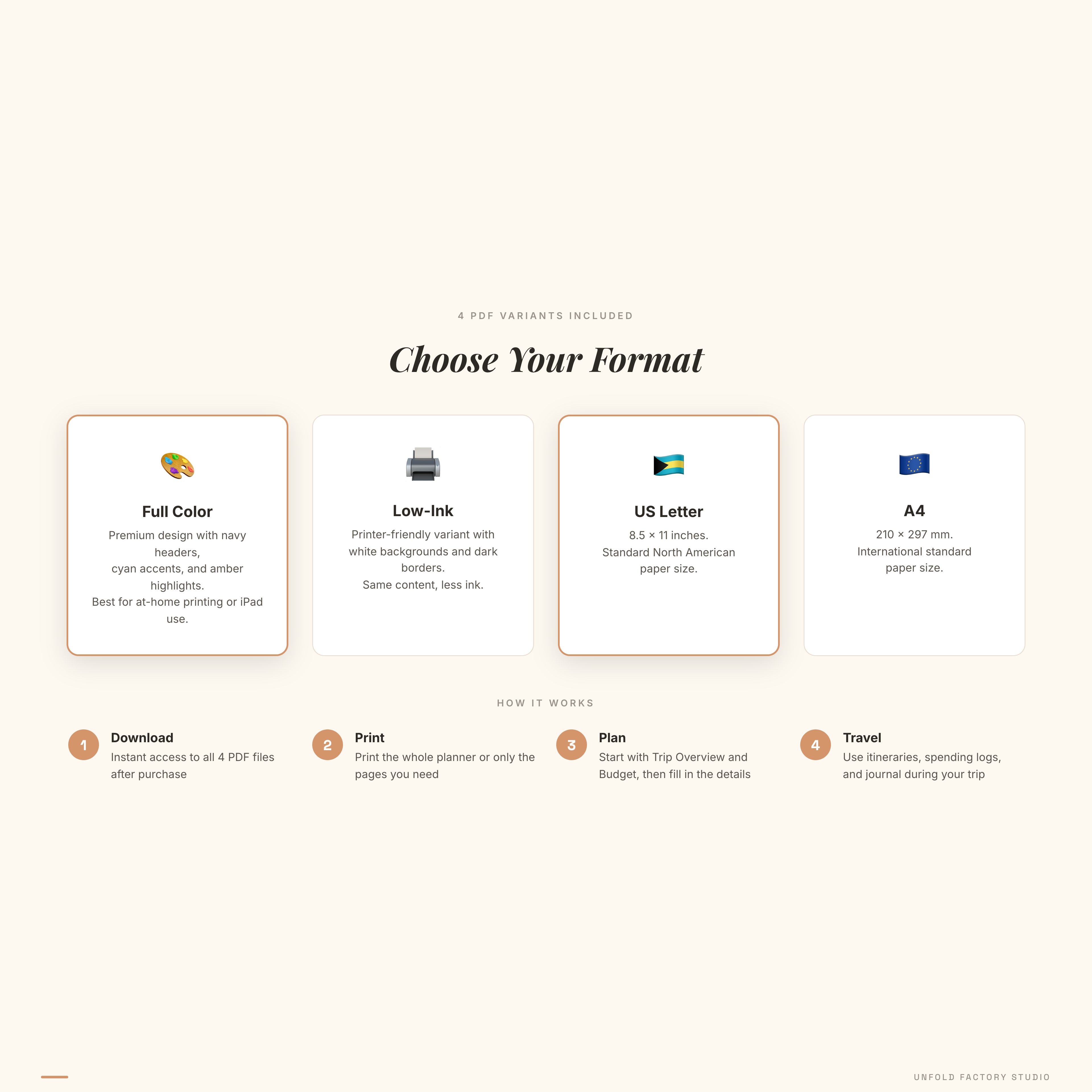 - 4 variants included: US Letter + A4, full color + low-ink (printer-friendly)
